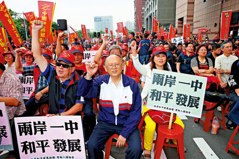 图:台湾民众在台北举行集会,支持两岸关系和平发展,批评民进党搞“台独”破坏两岸关系。\资料图片