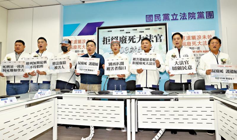 图:国民党日前举行“拒绝‘废死派’大法官,修法保障被害人及家属权益”记者会。