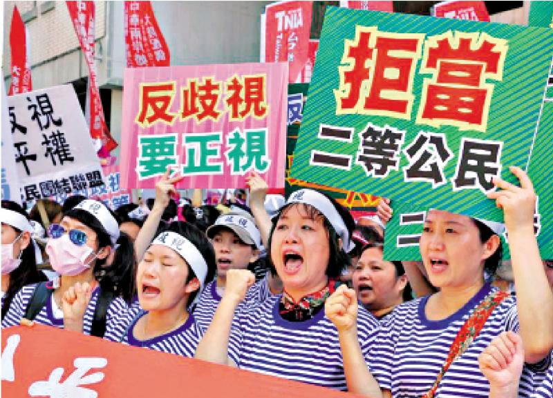 图:在台湾的大陆配偶举行集会,抗议台当局歧视大陆配偶。\资料图片