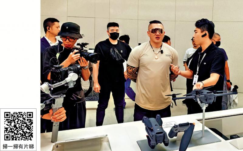 图:台湾网红“馆长”陈之汉13日参观深圳大疆旗舰店。/大公报记者郭若溪摄