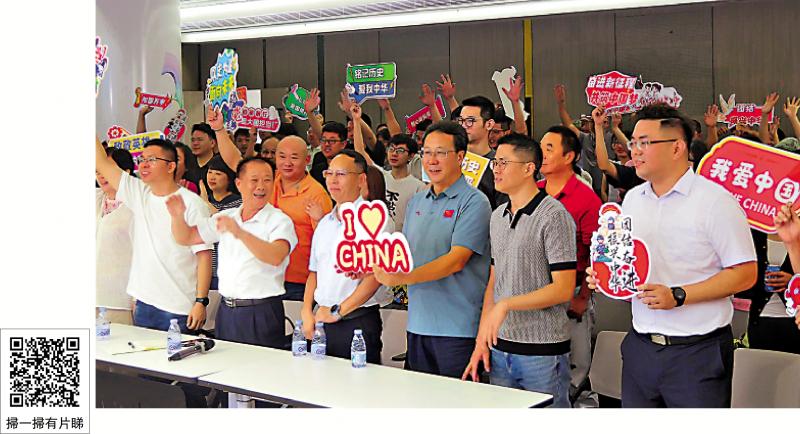 图:在厦门的台湾同胞3日观看大陆阅兵直播,期望两岸同胞携手同心,为实现中华民族伟大复兴贡献力量。
