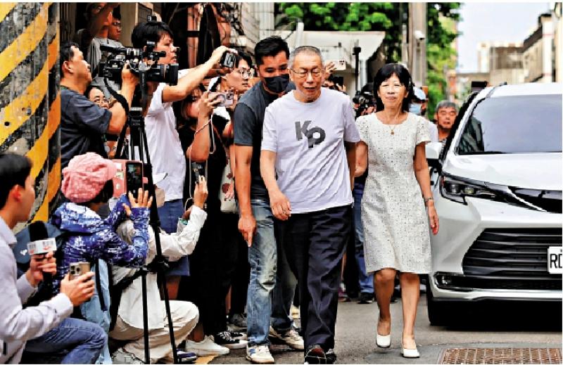 图:柯文哲8日获准保释,与妻子一起离开法院。