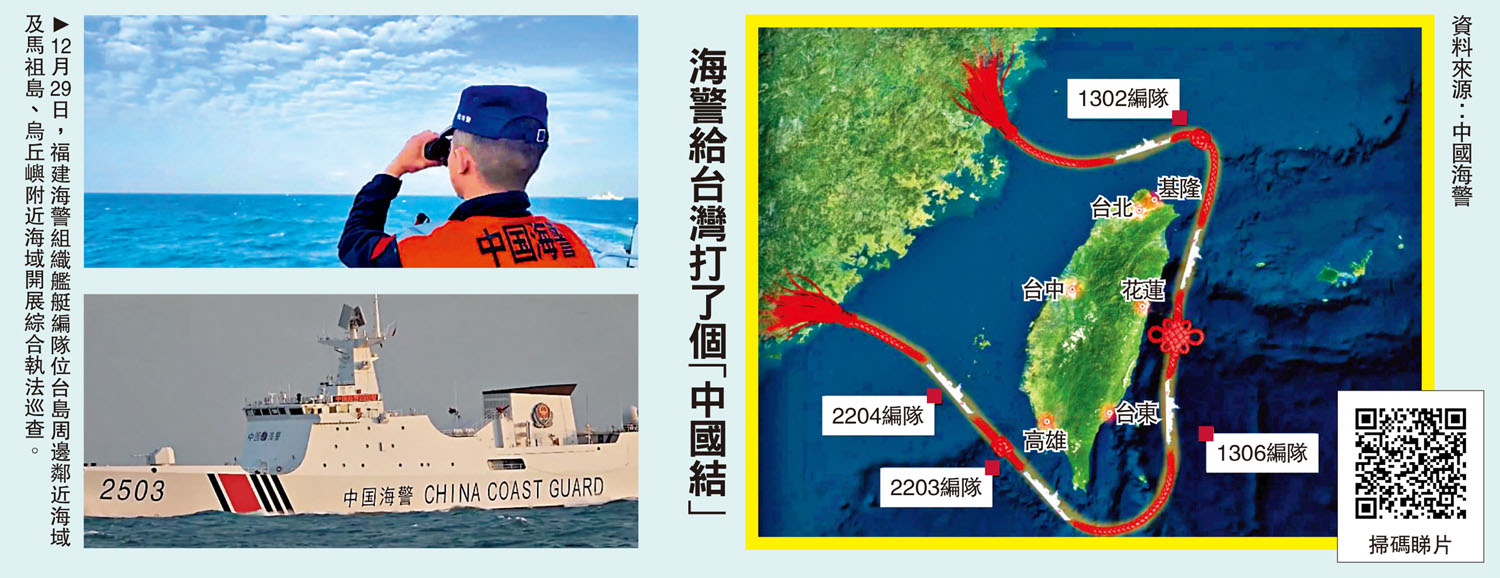 海警普陀山舰执法员严浩说:“下一步,我们将按一个中国原则,持续扩大执法巡查范围,对重点海域、重要港口和航线进一步加大管控力度,针对性开展综合执法演练,严厉打击违法犯罪活动,确保台岛周边海域安全稳定。”
