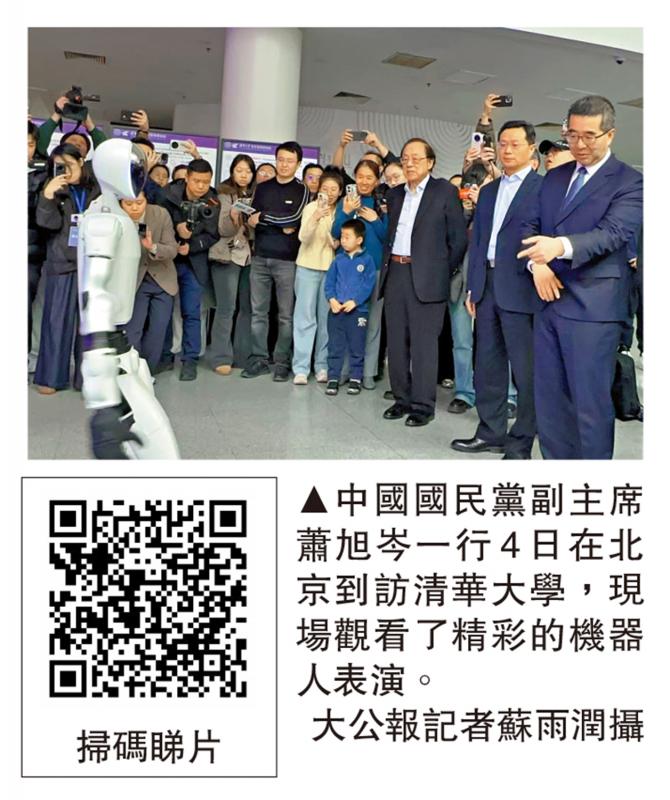 萧旭岑一行4日下午到访清华大学,现场观看了精彩的机器人表演。参观结束后,中国国民党国政研究基金会副董事长李鸿源表示,此行的核心就是两个字“务实”,两岸要和平。此次很多台湾的专家学者希望两岸能在科研方面结合,进一步落实在产业方面。