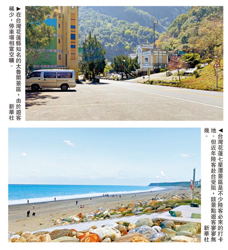 在台湾花莲县知名的太鲁阁景区,许多餐馆到了午餐时间仍少有客人,多个停车场较为空旷。一家牛肉面店业者表示,这几年客人少了七八成。如今,岛内旅游业的光景已远不如陆客曾大量来台时。没有了陆客,台湾旅游业复苏缓慢。岛内业界呼吁民进党当局尽快恢复两岸旅游往来正常化,重启陆客赴台游。