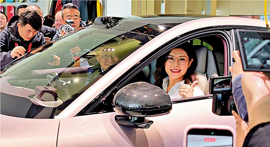 图:中国国民党主席郑丽文12日在北京参观小米汽车工厂时“试驾”小米YU7max,赞不绝口。\大公报记者朱烨摄