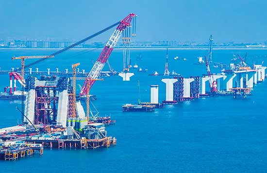 图:大陆最近发布的十项惠台政策措施,明确提出推动福建沿海地区在条件具备情况下同金门、马祖通水、通电、通气、通桥。图为厦金大桥(厦门段)进行施工。
