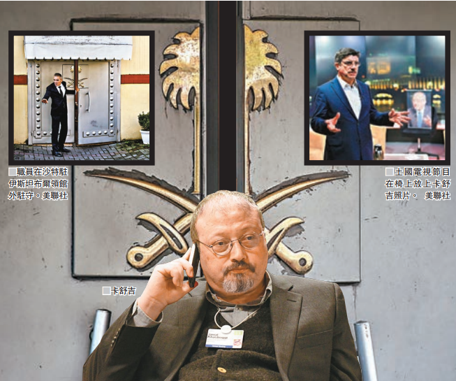综合报道,《华盛顿邮报》记者卡舒吉上周进入沙特阿拉伯驻土耳其伊斯坦布尔领事馆后,至今人间蒸发,有传他已遭沙特当局杀害。《华邮》前日引述土耳其官员指,土国已获取在沙特领事馆的录音和录像片段,足以证明卡舒吉是在领事馆内遇害,暂未知录音和录像片段细节。