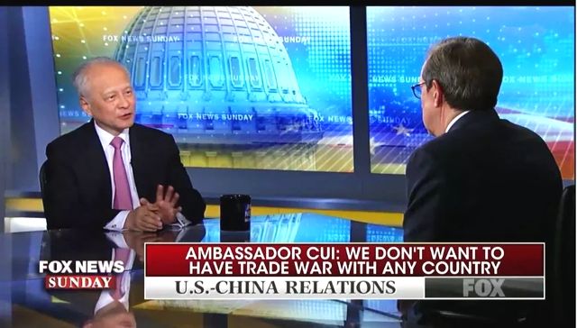崔大使:“贸易战”开打是一件不幸的事情,但错不在中方,我们只是被动回应而已。