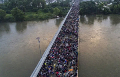 综合《国会山报》、今日美国等媒体报道,约5000名来自中美洲的移民21日继续在连接危地马拉和墨西哥的苏恰特河(Suchiate River)的一道桥梁上聚集,扬言要北上进入美国国境。墨西哥方面一直试图将其分成小组,缓慢处理他们的庇护申请。但上千名的移民们却已经失去了耐心,他们绕过机构、乘上临时搭建的木筏,部分人甚至跳入河中尝试潜入墨西哥。