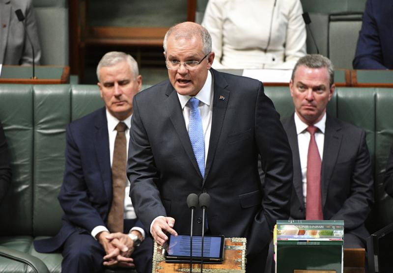 图:澳洲总理莫里森22日在议会发表演说,向性侵受害者致歉 美联社