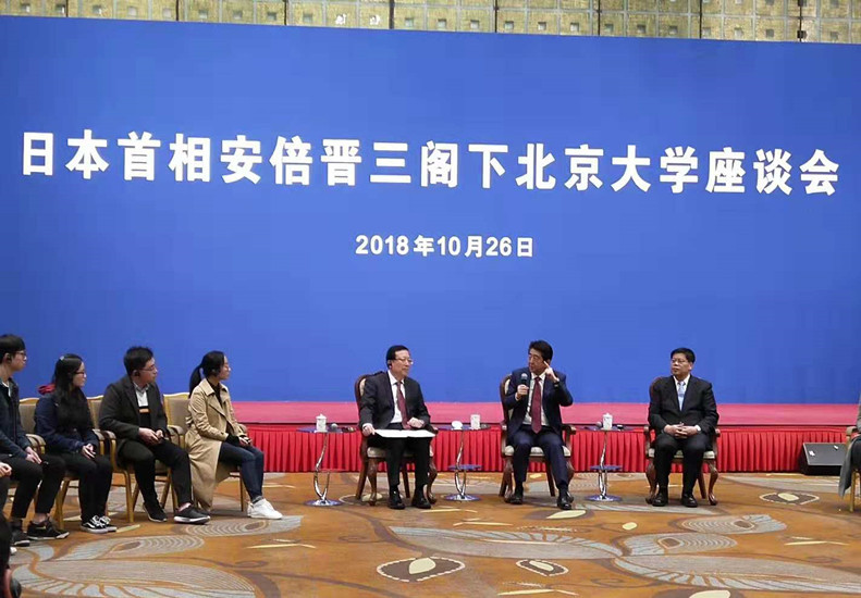 安倍在北大与学生交流:"希望大家到日本来接触动漫等"