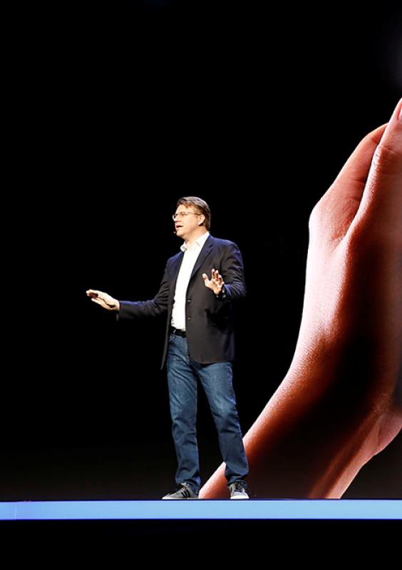 丹尼森进行主题演讲时,简要介绍了这款使用“无限曲折”(Infinity Flex)显示屏技术的概念装置,并演示了手机如何在打开后同时运行三个应用。他说,该技术使屏幕能承受多次开合,并表示“这项显示技术是未来智能手机的基础”。