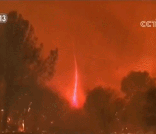 受强风影响,山林大火持续向西蔓延,迅速蔓延至拥有超过9万人口的奇科镇附近。在奇科镇附近的天堂镇,夜空被火光映成红色,一道醒目的火龙卷正随强风舞动。大火之下,天堂镇化为灰烬,当地数千居民被迫提前撤离。