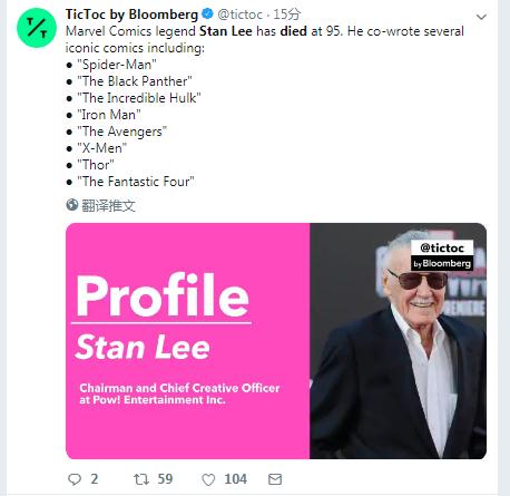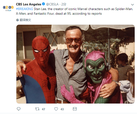 美国漫画界元老级人物斯坦·李于当地时间周一(12日)在好莱坞一家医疗中心去世