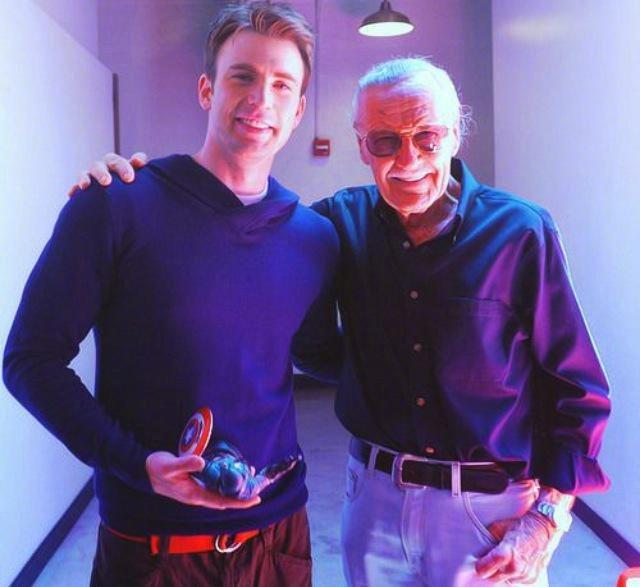 斯坦·李与美国队长扮演者克里斯·埃文斯