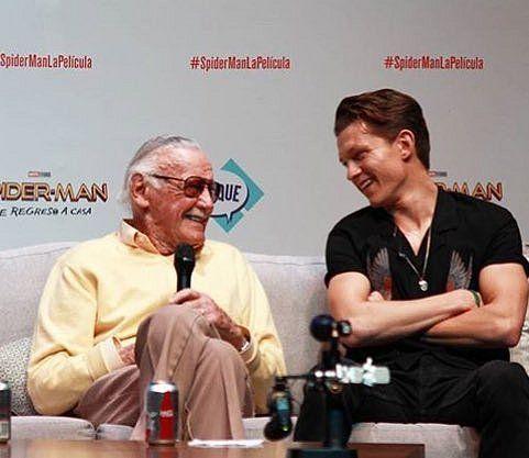 斯坦·李与现任电影“蜘蛛侠”扮演者汤姆·霍兰德