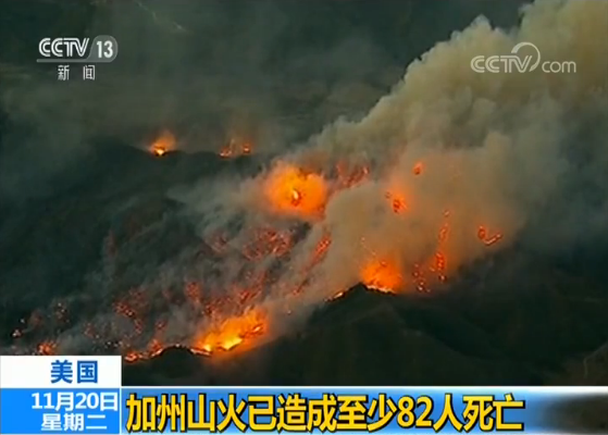 目前,加州北部和南部的山火造成的死亡人数已经上升到82人,失联人数由此前的993人修正为700人左右。