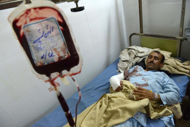 图:23日,巴基斯坦北部城市科哈特发生爆炸,伤者在医院接受治疗\法新社