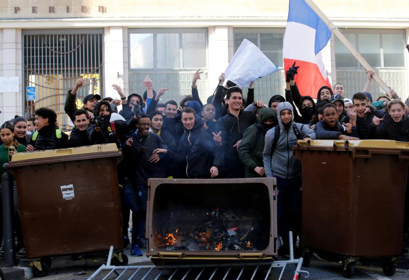 图:法国高中生4日走上街头抗议大学改革\路透社