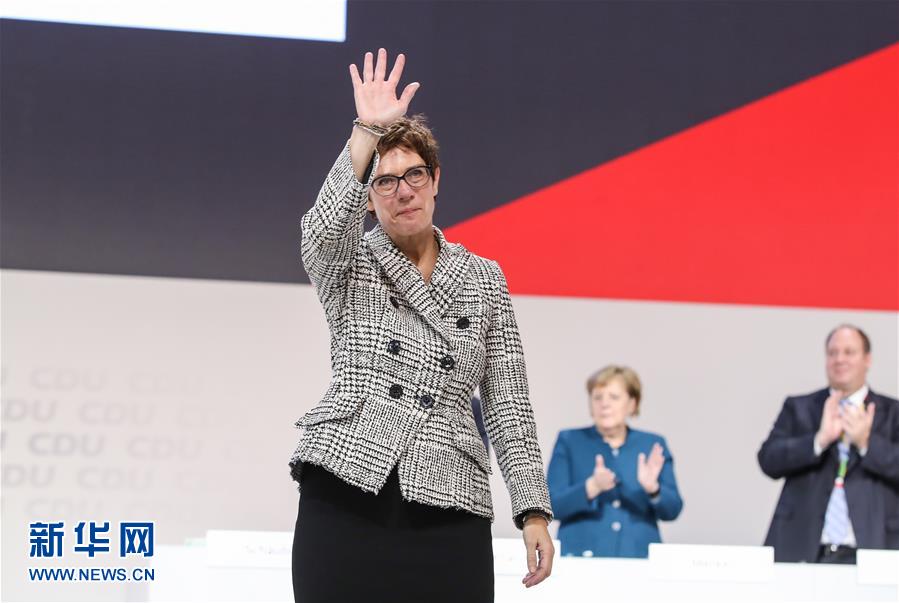 12月7日,在德国汉堡,德国基民盟新任主席安妮格雷特·克兰普-卡伦鲍尔在胜选后致意。 新华社记者 单宇琦 摄
