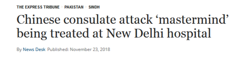 而外媒称,就在中国驻卡拉奇领事馆袭击事件发生的当天,阿斯拉姆·阿奇曾在印度新德里一家医院接受治疗。