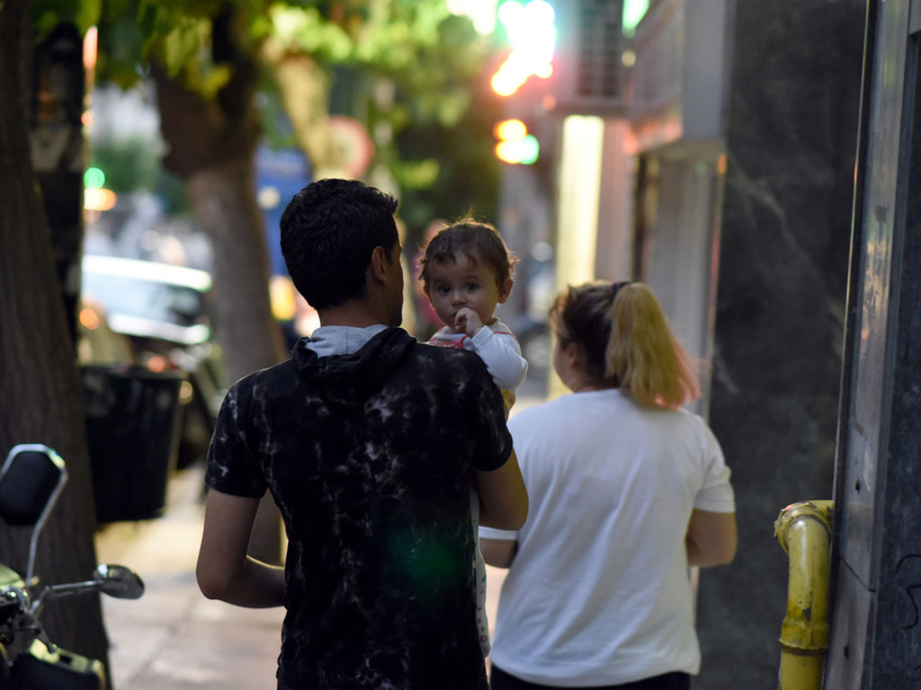 雅典的叙利亚难民在等待解决他们的庇护申请期间在居住的公寓附近走动。(儿基会图片/UN022002/Georgiev)