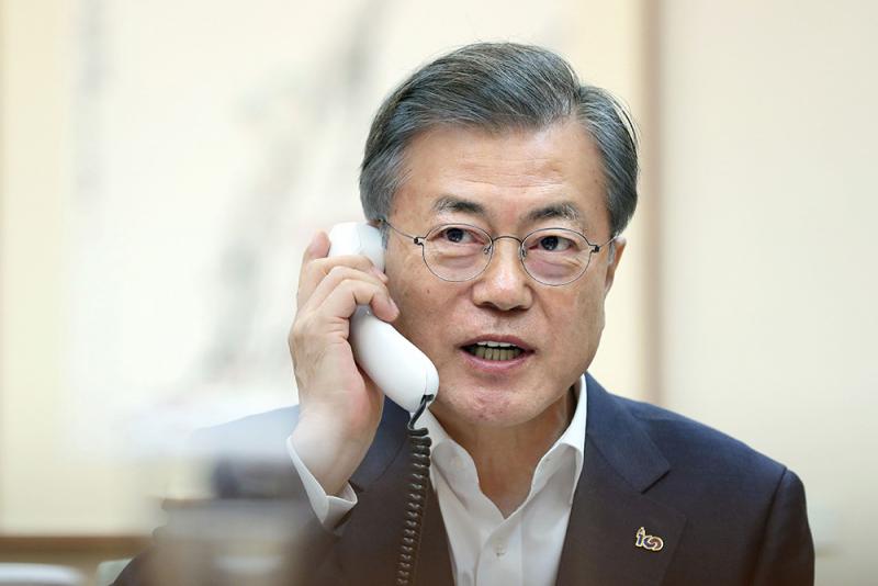资料图:28日,文在寅於青瓦台与特朗普通电话\法新社