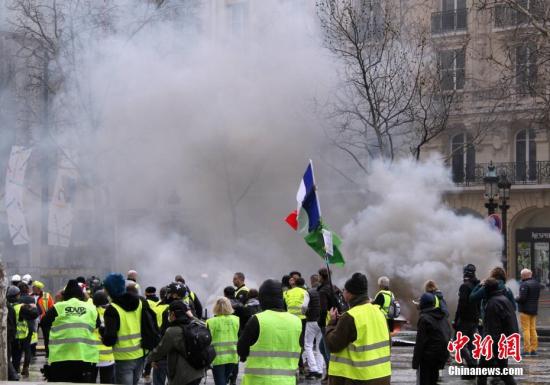 资料图:当地时间3月16日,巴黎发生大规模示威。中新社记者 李洋 摄