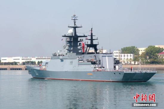 此前,红方第一、第二舰艇编队已分别组成防空队形,护送俄方“伊尔库特”号油船模拟的商船通过预定海区。途中,中方两架歼击轰炸机组成的蓝方航空兵群对红方护航编队进行了突袭,中俄海军护航舰艇使用导弹和火炮武器系统进行模拟抗击。