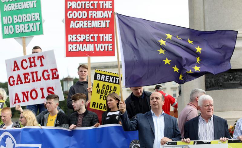 图:北爱尔兰民众7月31日反对脱欧 法新社