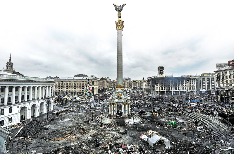 图:乌克兰首都基辅市中心的独立广场在示威运动后沦为废墟\法新社