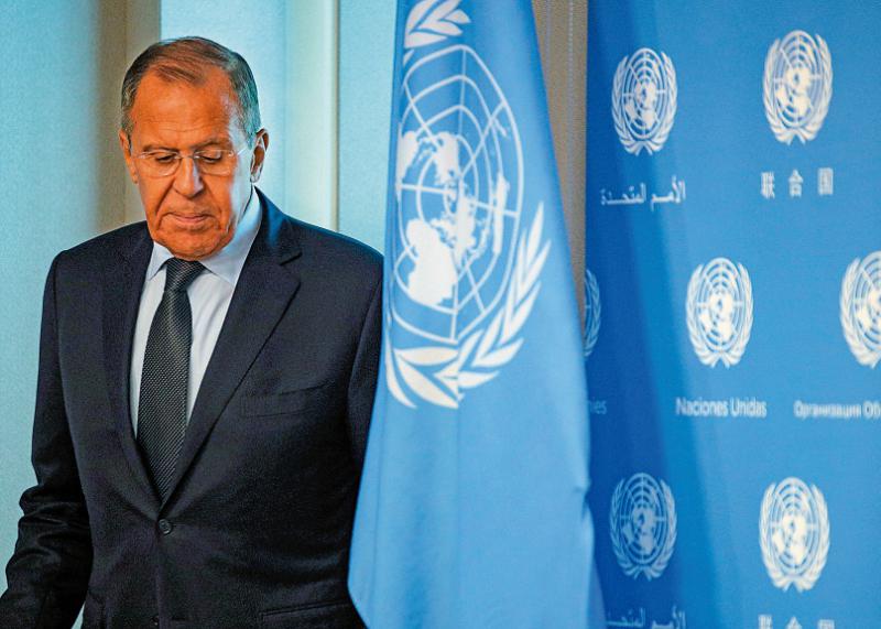 图:俄罗斯外长拉夫罗夫27日在纽约出席联大会议\路透社