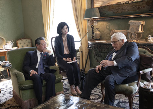 王毅表示,中美建交40周年之际,中国人民积极评价基辛格博士为推动中美关系发展作出的历史性贡献。当前,中美关系再次来到一个十字路口。美国内一些鼓吹以中国为对手、甚至渲染美中脱钩的主张是危险的。中方致力于同美方实现不冲突、不对抗,相互尊重,合作共赢,共同建设以协调、合作、稳定为基调的两国关系。希望美方也能秉持“和而不同”,同中方相向而行,在相互尊重的基础上管控分歧,在互惠互利的基础上深化合作,共同推动中美关系健康稳定向前发展。希望基辛格博士继续为深化中美之间的交流与合作发挥桥梁作用。