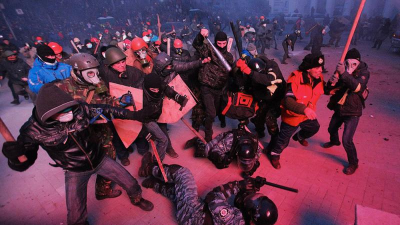 2014年1月28日,在反对派“绝不允许将乌克兰建成一个警察国家”的口号中,时任乌克兰总统亚努科维奇妥协了,他解散了阿扎罗夫内阁,匆匆签署了新的法案,推翻了1月16日经由议会表决通过、由其本人签署的第721-VII号法律中的九项内容,希望以此换取反对派的支持,恢复正常社会秩序。然而,反对派并没有让步,独立广场仍不断有人死于乱枪,包括示威者,也包括警察。亚努科维奇明白了,反对派此时要的已不只是妥协和秩序,他们瞄准的是权力。2月22日,亚努科维奇逃亡俄罗斯。反对派组成的临时政府顺势接掌权力,6月7日代表反对派的波罗申科正式当选新一任乌克兰总统,历史也似乎翻开了新的一页。