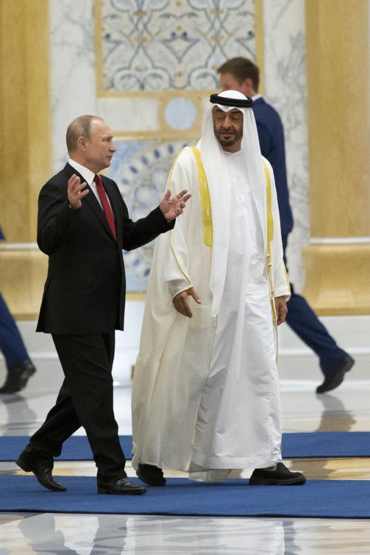 普京15日访问阿联酋时也接到了高规格待遇,阿联酋王储扎耶德前往机场迎接。接着,骑马的士兵护送两人前往阿布扎比总统府,军机在天空中喷绘出俄罗斯国旗。两国近来加速了商业合作,两国贸易额在2018年增长25%,达到34亿美元。另外,阿联酋也想藉机与俄罗斯的盟友──叙利亚及伊朗提升关系,阿联酋此前反对叙利亚阿萨德政权,但近两年转变态度,并在去年12月于大马士革重开使馆。另外,阿联酋也希望向伊朗示好,防止油轮再次遇袭,该国已经静悄悄地从也门撤军。伊朗总统鲁哈尼也在14日表示,接待了阿联酋的高级别官员,两国关系最近有所好转。