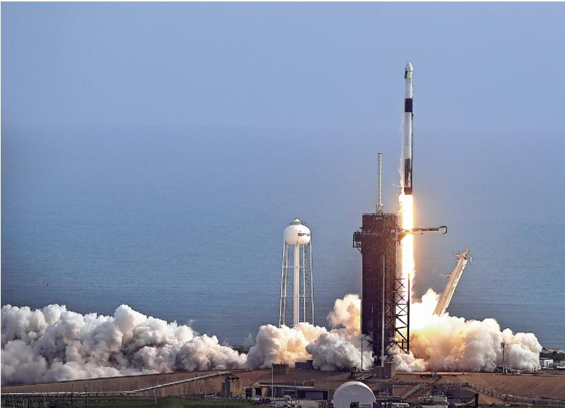 图:“猎鹰9号”火箭19日载着“载人龙飞船”升空\美联社