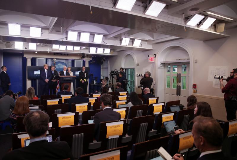 图:白宫23日的新闻发布会记者人数明显减少\路透社