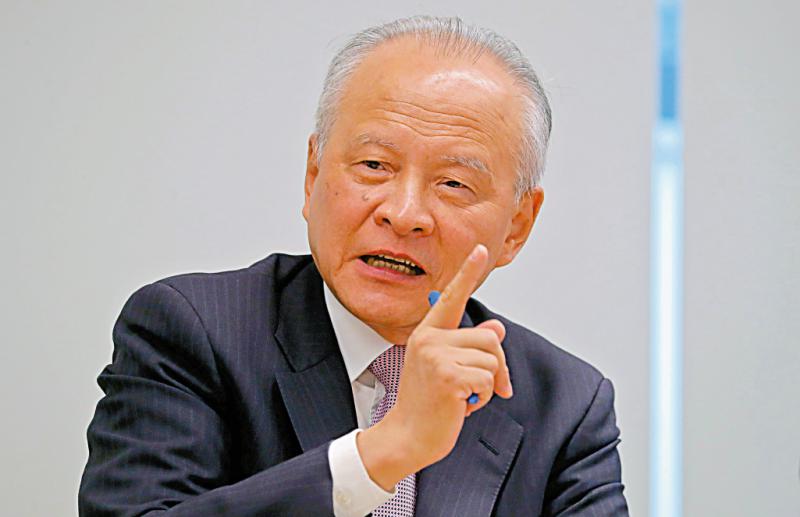 【大公报讯】综合新华社、中新社报道:中国驻美国大使崔天凯表示,新冠肺炎疫情已成为全球性挑战,任何国家都无法单靠自己取得胜利,呼吁各国合作抗疫。中国正努力在国际抗疫方面作出贡献。他还强调,尽管过去数周面临严峻局面,中方仍坚持执行中美第一阶段经贸协议内容。