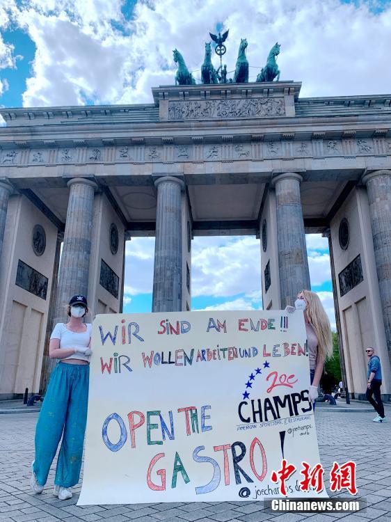 当地时间4月26日,餐饮业者在德国柏林勃兰登堡门前打出“开放餐馆”的标语抗议。因受疫情影响严重,德国各地的餐饮业者连日来举行了多场抗议活动,呼吁当局明确允许其恢复堂食业务的时间表。(中新社记者 彭大伟 摄)