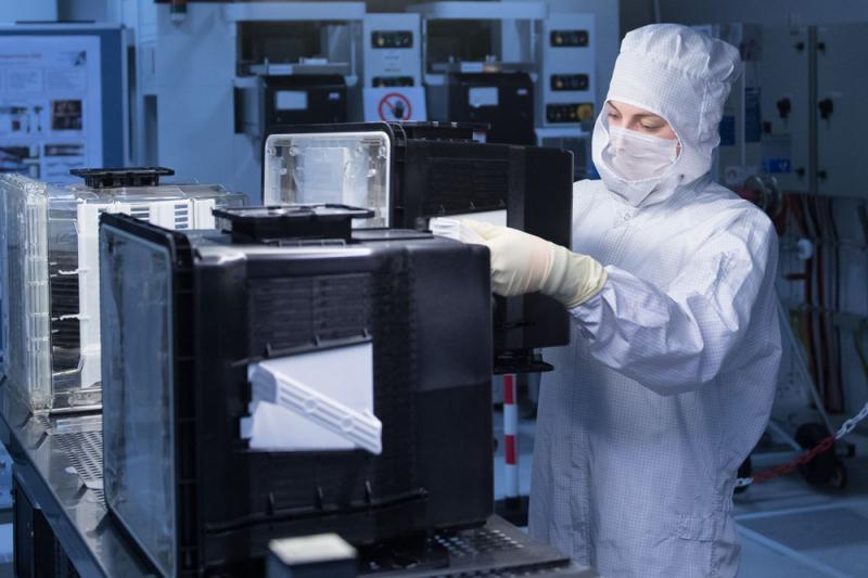 图:工人在美国芯片制造商格芯位于德国的工厂内工作\资料图片