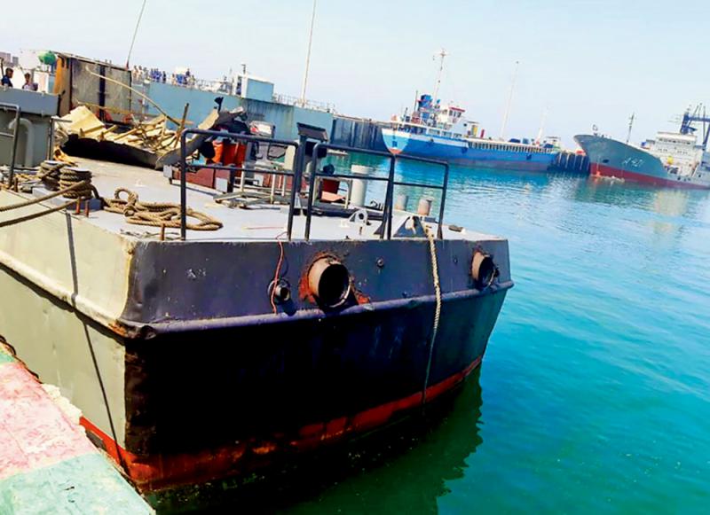 图:遭导弹重创的“科纳拉克号”已被拖至港口\法新社