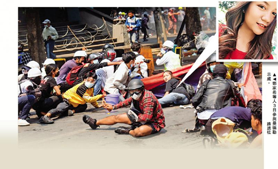 缅甸局势持续动荡,一名19岁华裔少女邓家希在3日的示威中头部中弹身亡,有关方面迅速炒作事件,指责警方开枪杀人。缅甸当局5日晚开棺验尸,表示示威者头部找到的一块1.2乘0.7厘米的铅块,并非警方所用的子弹,推测是有“不想要稳定的人执行这场暗杀”。事件迅速令人联想,包括乌克兰等国过去发生的颜色革命中,第三方势力趁乱放冷枪,让矛盾进一步升温的做法。