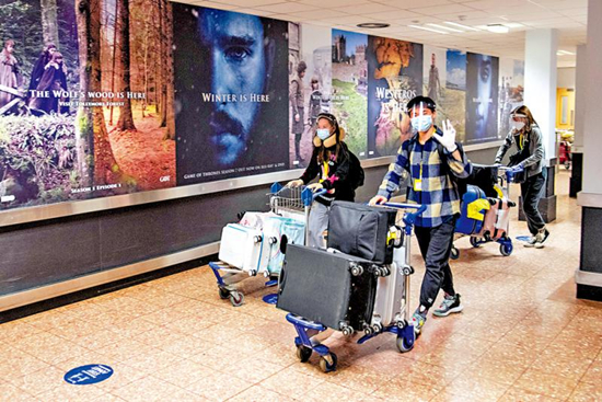 图:疫情期间,中国留学生抵达北爱尔兰贝尔法斯特机场。\网络图片