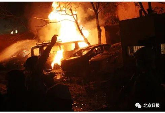 事发后,救援人员寻找受伤人员,消防员扑灭燃烧的车辆。