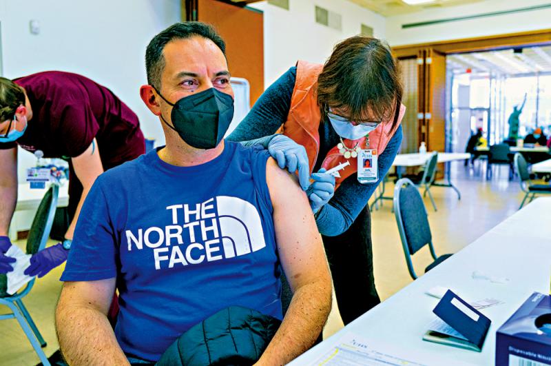 图:美国民众3月19日接种新冠疫苗。\美联社