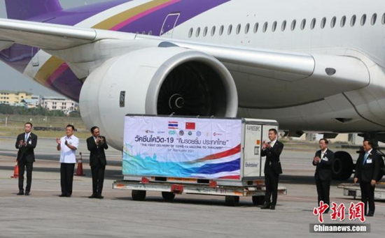 2月24日,泰国政府采购的首批中国科兴公司新冠疫苗运抵曼谷素万纳普机场。 中新社记者 王国安 摄