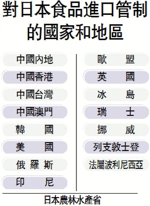 香港禁止来自福岛县的所有蔬菜及水果、奶、奶类饮品及奶粉进口。