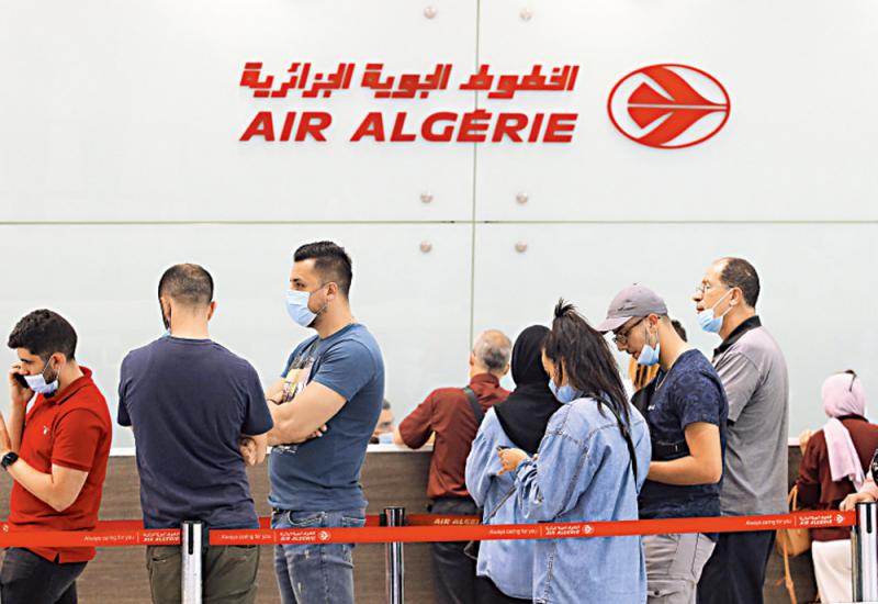 图:1日,旅客在阿尔及利亚机场等待飞往巴黎的班机。\美联社
