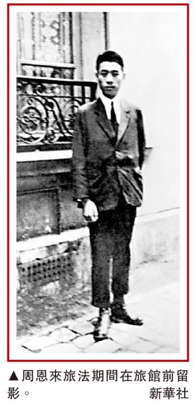 图:周恩来旅法期间在旅馆前留影。\新华社
